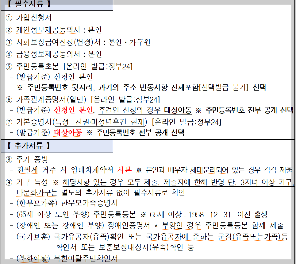 -가구특성 증빙자료(본인에 한함) : 장애인 증명서, 한부모가족증명서